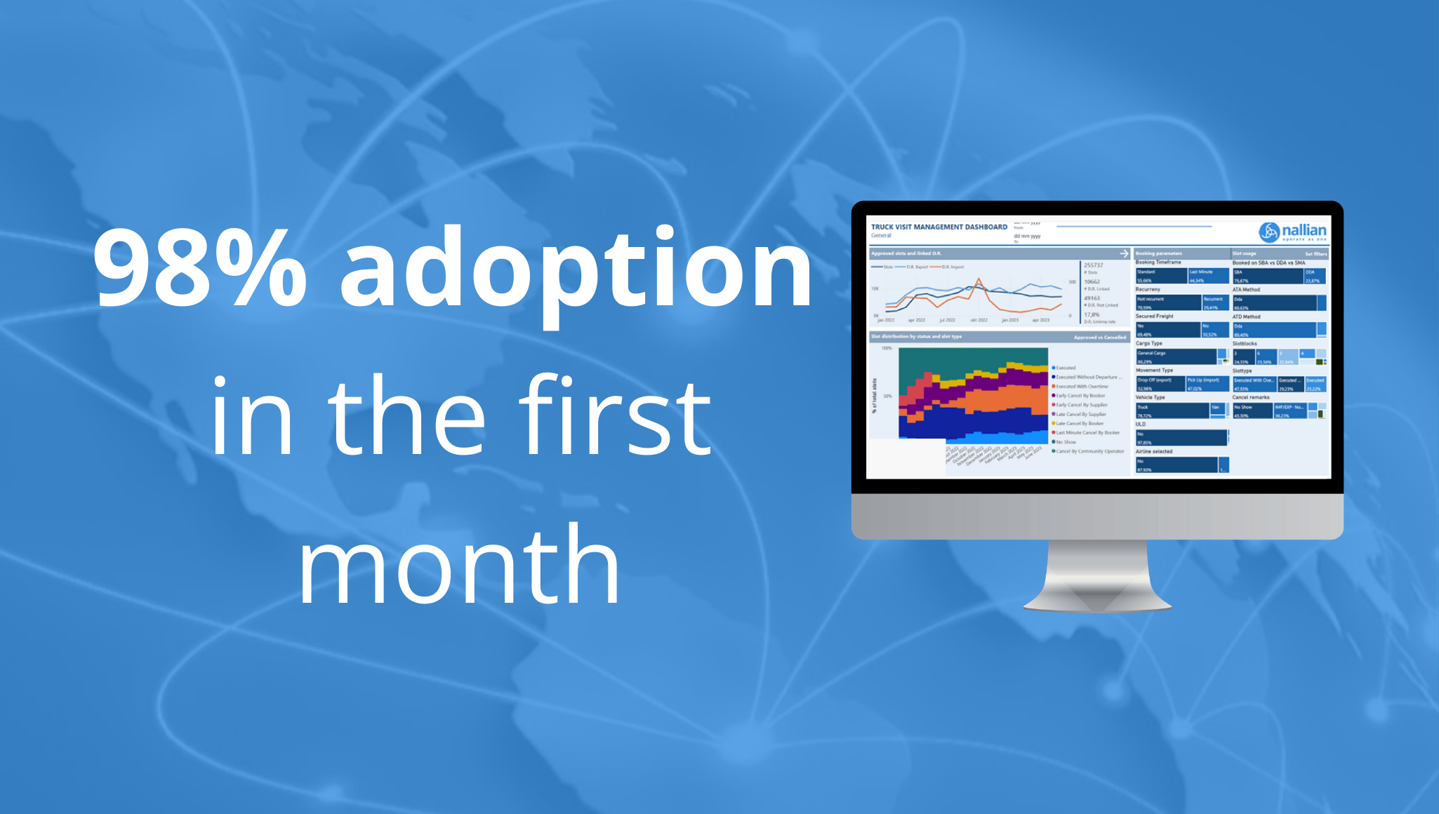 To ensure a good follow-up, Nallian’s implementation manager is working closely with the stakeholders to discuss usage data. Custom dashboards displaying operational performance data (such as throughput times and booking patterns), allow a close follow up on user behavior, and detecting areas for improvements in the operational flows.
